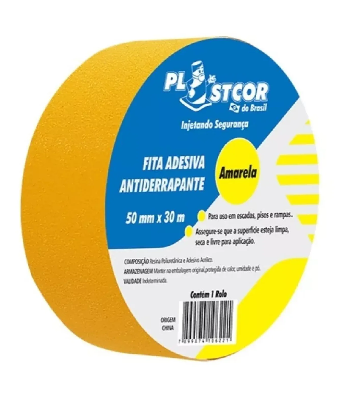 Fita Adesiva Plastcor Antiderrapante Amarela 50Mm X 30M
