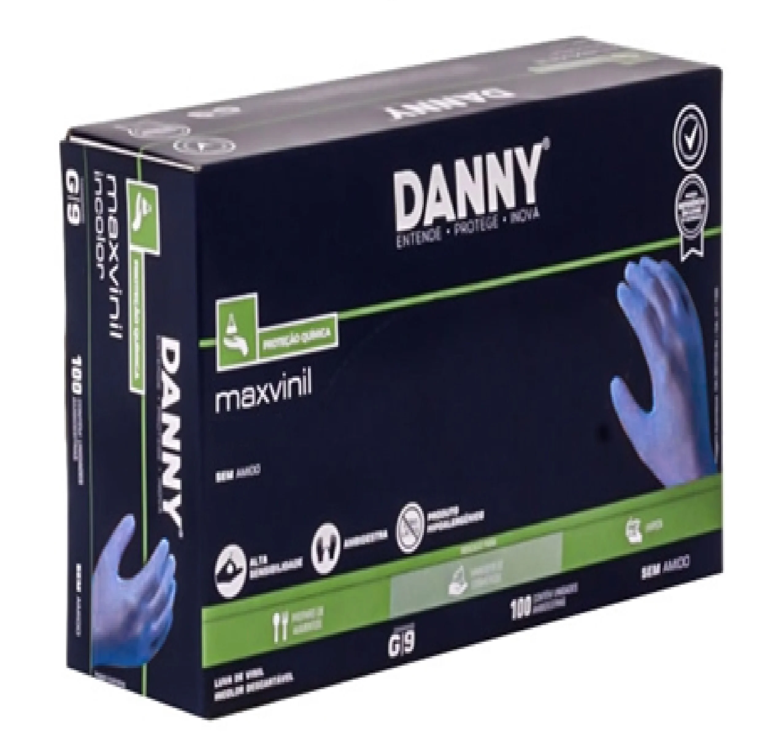 Luva Vinil Danny Maxvinil Descartável Sem Amido Azul 100 Un DA-301CS CA 21120 Tam.M