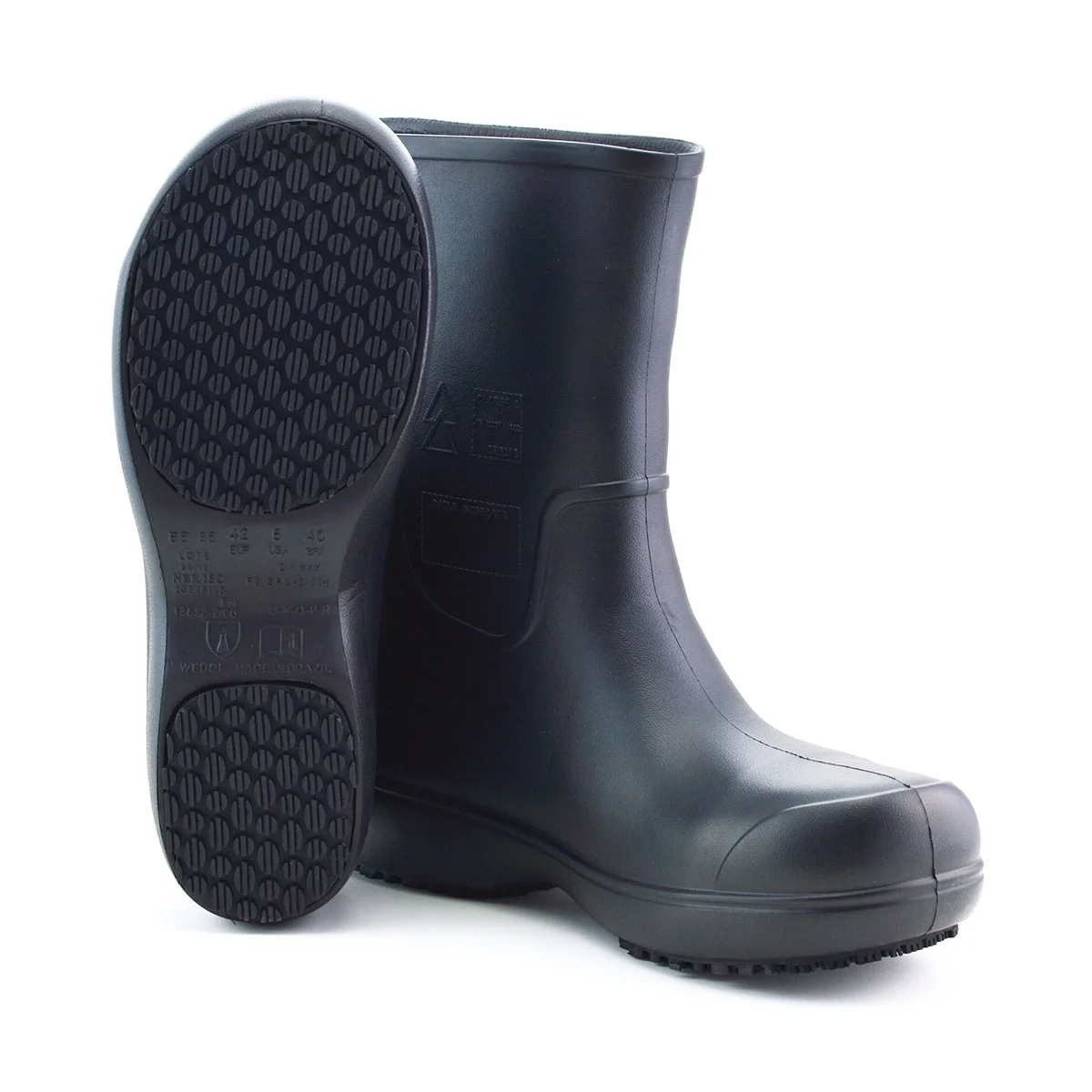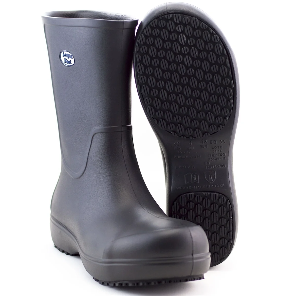 Vantagens: Biqueira de composite – Isolante contra o Frio – Isolante elétrico – Resistente a produtos químicos – Solado antiderrapante. Calçado de proteção tipo bota cano longo, confeccionado em EVA, com solado de borracha antiderrapante, biqueira de composite, resistente ao escorregamento em piso cerâmico com solução de detergente e em piso de aço com solução de glicerol, resistente à absorção de energia na área do salto, à isolação elétrica, isolação contra o frio e a produtos químicos. Aplicações: Adequado para Frigoríficos, Açougues, Abatedouros, Cozinhas Industriais, Laticínios, Limpeza e outros lugares com pisos escorregadios, manipulação de produtos químicos (D-K-O-P-R), evitar risco choque elétrico, ambiente frio, etc…